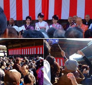 温かい日差しとよい景気づけに気分をよくしつつ、隣の豆まきスペースに移動。