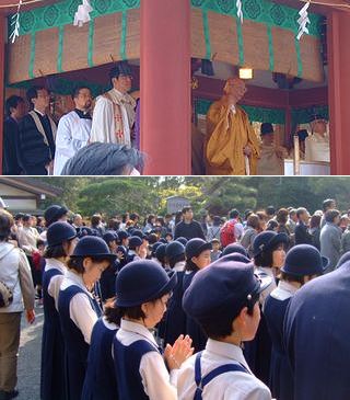 3.11の震災からちょうど一ヶ月。鶴岡八幡宮の舞殿にて神道、仏教、キリスト教 合同でのご供養および復興祈願祭が行われました。 各宗教者、地元の住民、観光客大勢の方が心を一つにして祈りを捧げます。このような宗教を超えてのイベントは祈りのまち、鎌倉ならではのものだと思います。