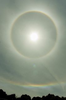 環水平アークは 太陽の高度が高いこの時期にしか見られない現象で、さらに日暈と同時に見られるのはたいへん珍しいとのことです。