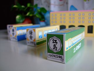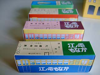 江ノ電の電車の形をしたパッケージに 個包装された最中の上品な甘さがあとをひきます。