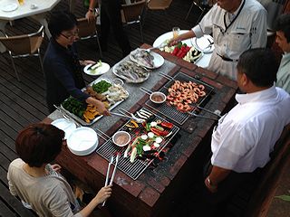 森林浴をしながら新鮮な野菜と魚介類、ボリューム満点のお肉をいただくのは