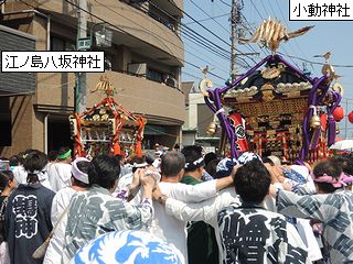 元々小動神社の御神体だった須佐之男命の木像が津波で江の島に流され、八坂神社の祭神として祀られたことに由来するとのことですので、里帰りのような感覚なのでしょうか?