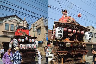 山車の上の人形は八幡太郎義家と鎌倉権五郎影政や義経・弁慶など
