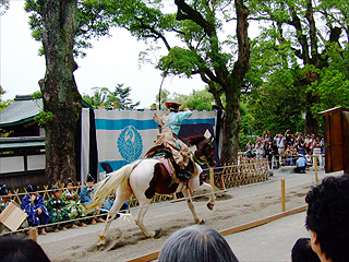 この日のために本宮へ向う表参道を東西に横切る通路には250mあまりの馬場道が作られます。