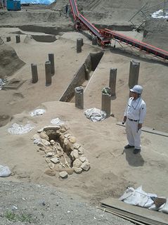 時代を下って中世(12〜16世紀)時代の地層からも壮年の女性のご遺骨が発掘されました。この日に取り上げ作業を行いました。