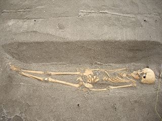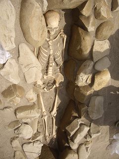 この石棺の近く、同時代の地層から6歳前後の子供の土葬墓も発見されています。