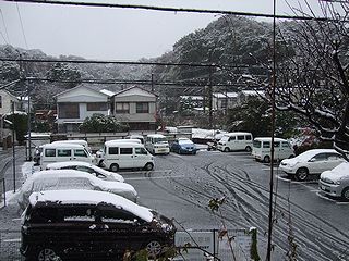 朝は普通の雨でしたがだんだんとみぞれへ、やがてはぼたん雪のような量感のある降り方へと変わってゆきました。交通量の少ない当社の周りはみるみるうちに白くなってしましましたよ。