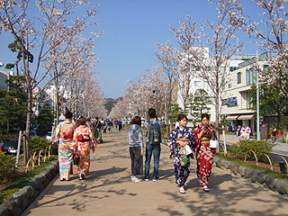 老若男女、多種多様な国の人々がお花見散歩でそぞろ歩く中、